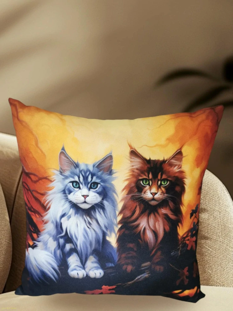 Dekorační polštářek s motivem dvou mývalích koček